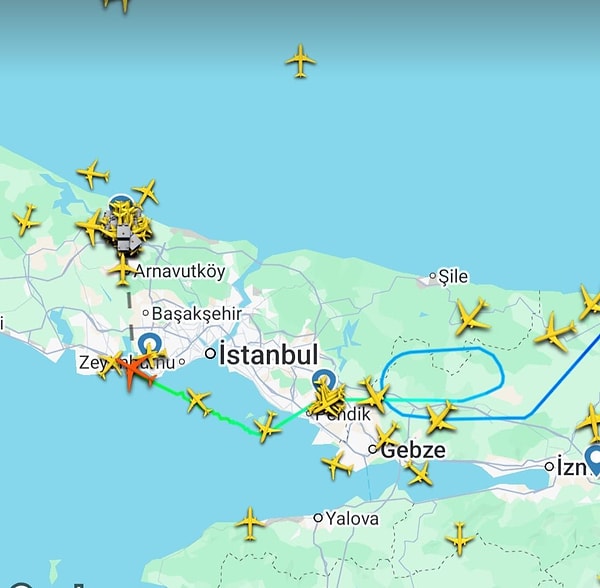 İstanbul Havalimanı’nda da sağanak yağış etkili olurken, Cümülonimbus (CB) olarak adlandırılan kötü hava şartlarına ve yıldırımlara neden olan bulutlar nedeniyle uçaklar havada tur atıyor. CB bulutlarına yakalanmamak isteyen pilotlar havada tur atmak zorunda kaldı. Pilotlar, hava trafiğiyle ilgili kontrollerde gördükleri olumsuz hava koşulları olduğunu koordinatlar konusunda bilgi veriyor.