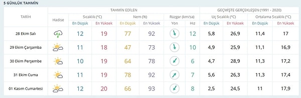 Hava sıcaklıklarının yarın en düşük 12, en yüksek 19 derece civarında seyredecek. Meteoroloji Genel Müdürlüğü verilerine göre hafta ortasında güneşli bir havanın hakim olacak.