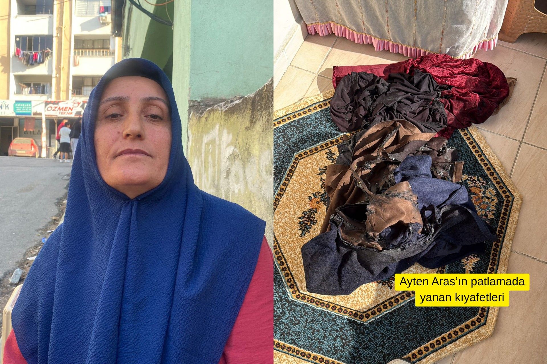 Yangından kıl payı kurtulan Ayten Arası ve patlamada yanan kıyafetleri